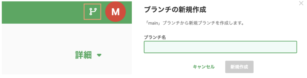 1. 右上メニューから「ブランチ詳細・マージ」をクリック