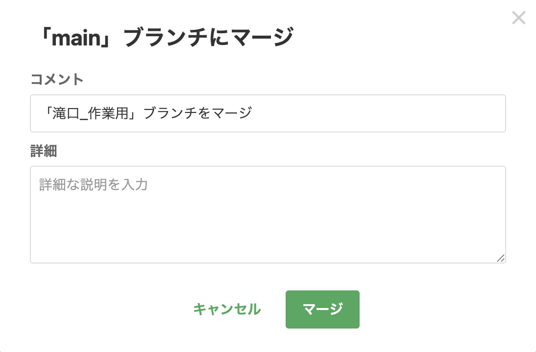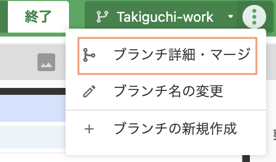 1. 右上メニューから「ブランチ詳細・マージ」をクリック
