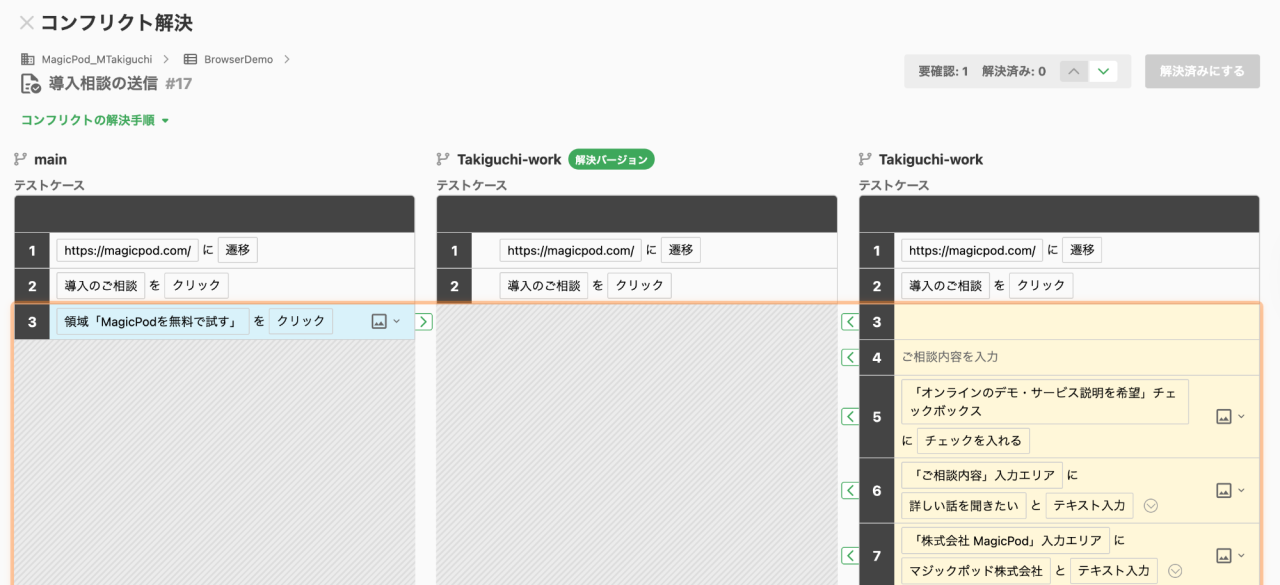 MagicPodでは、視覚的にコンフリクトを解決できます。