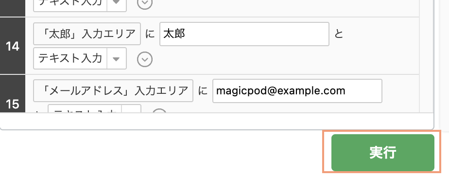▼テストケース編集画面の実行ボタン(画面真ん中下)