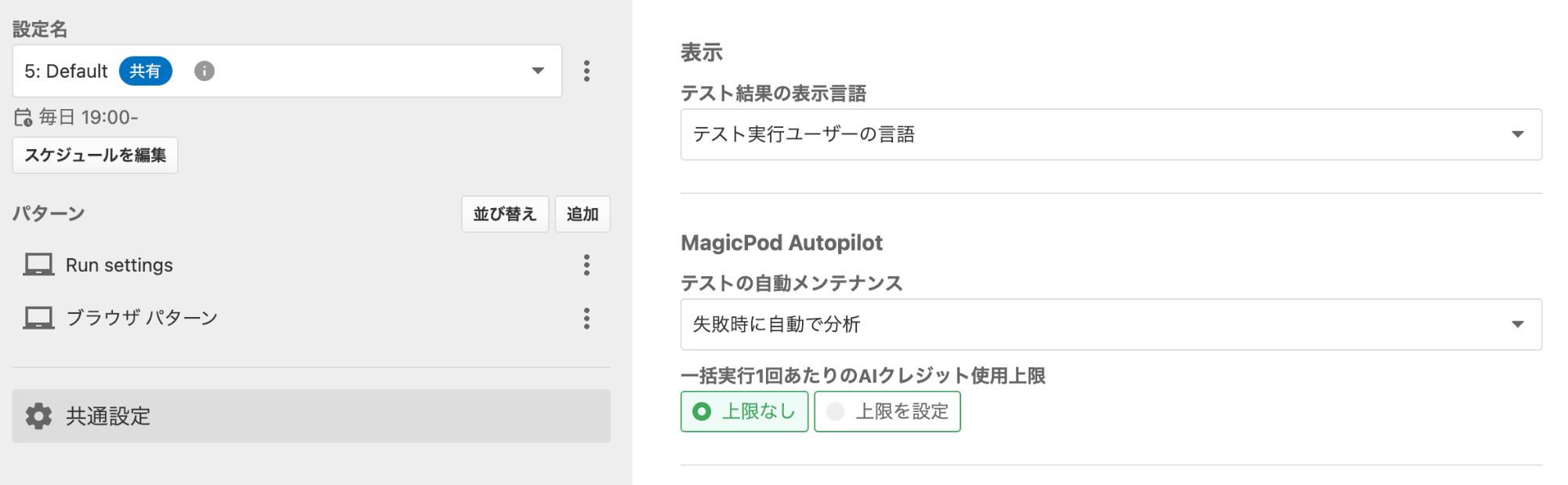 失敗分析機能は個別のテスト結果に対して手動で実行することもできますが、一括実行(バッチ実行)時に自動で失敗分析を行う設定もできます。これがとても便利です。
