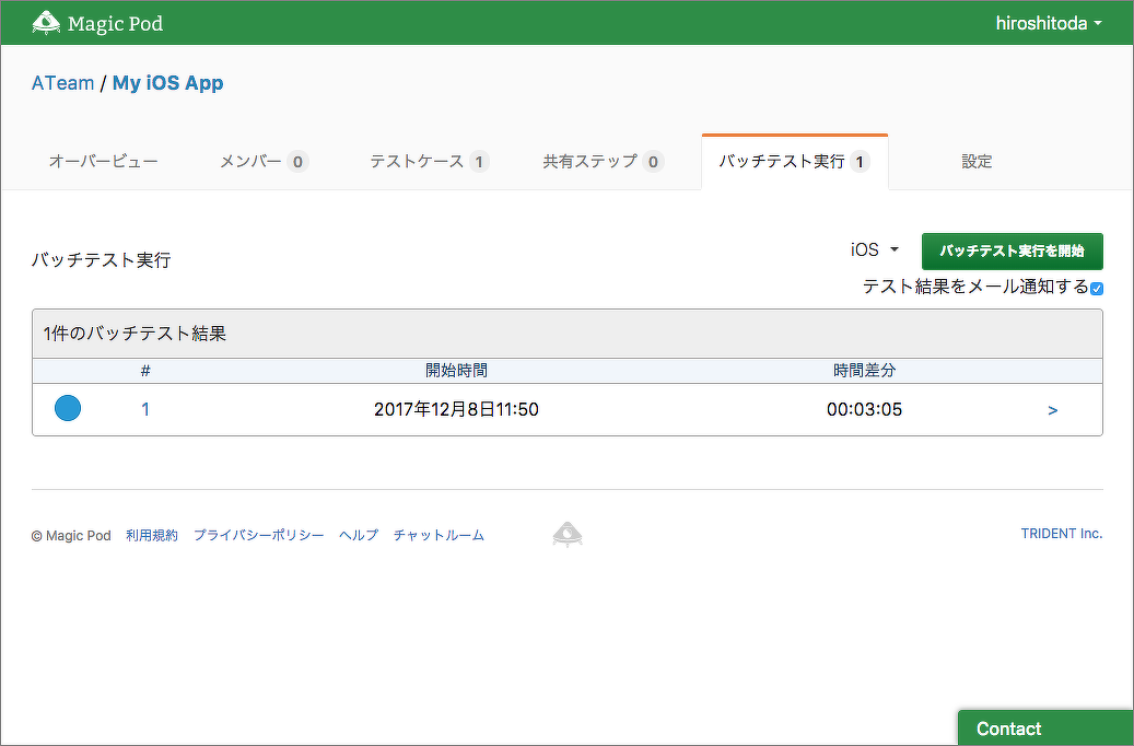 CLIで実行した結果は、Magic Pod上ではプロジェクト画面の「バッチテスト実行」ページで確認できます。