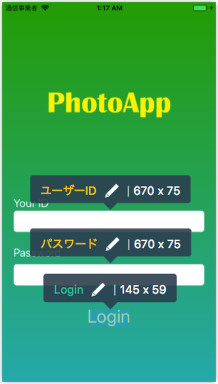まず、ログイン画面です。同じログイン画面ですが、テキストフィールドに入力するときに画面が全体的に上に移動する仕掛けがあって見た目の構造が大きく変わりますので、念のため2種類の画面ととらえてテストケースを作りましょう。