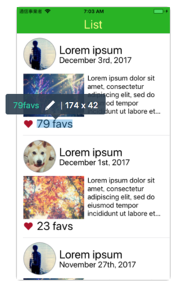 では、一覧画面と詳細画面を再キャプチャして、新しいテストケースを挿入してみましょう。ここでは、日付文字列の比較と同様に、お気に入りの表示を比較します。