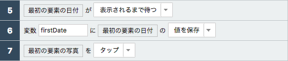 次に、一覧画面です。ここでは、表示されている日付の文字列を、次の画面の日付文字列との比較のためにいったん変数に保存しておきます。