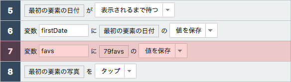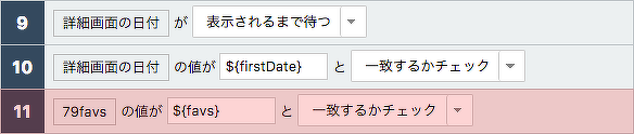 詳細画面で、先ほど保存した変数を呼び出して、この画面のお気に入りの表示と比較します。