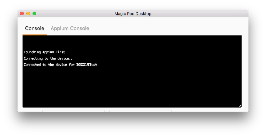 設定が完了したら、シミュレーターに接続しましょう。Magic Pod Desktopのコンソールに「Connected to the device」と表示されたら、接続完了です。