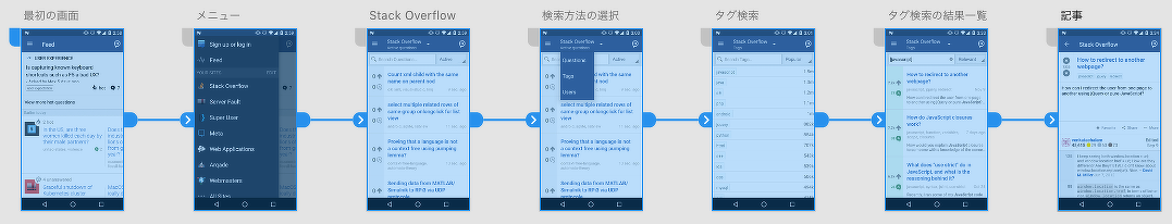 次の画面遷移図が示すシナリオに沿って、Stack Overflow上でのタグ検索で得られる記事に同じタグが含まれているかを確認してみましょう。