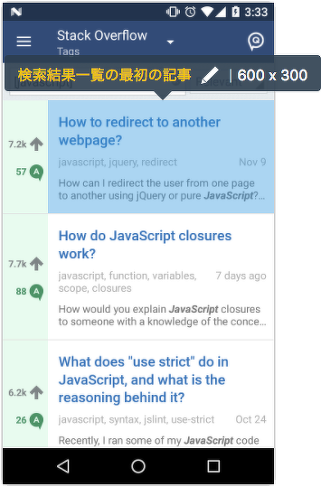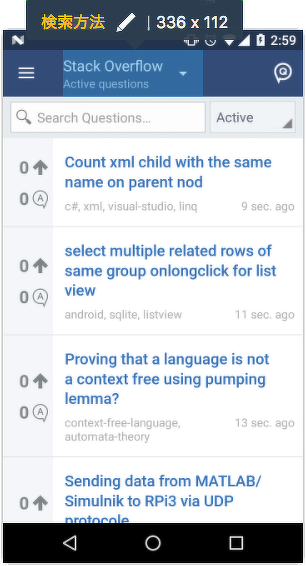 では、試しにGoogle Playで配布されているStackExchangeアプリを題材に、Magic Podで最初のアサーションをやってみましょう。