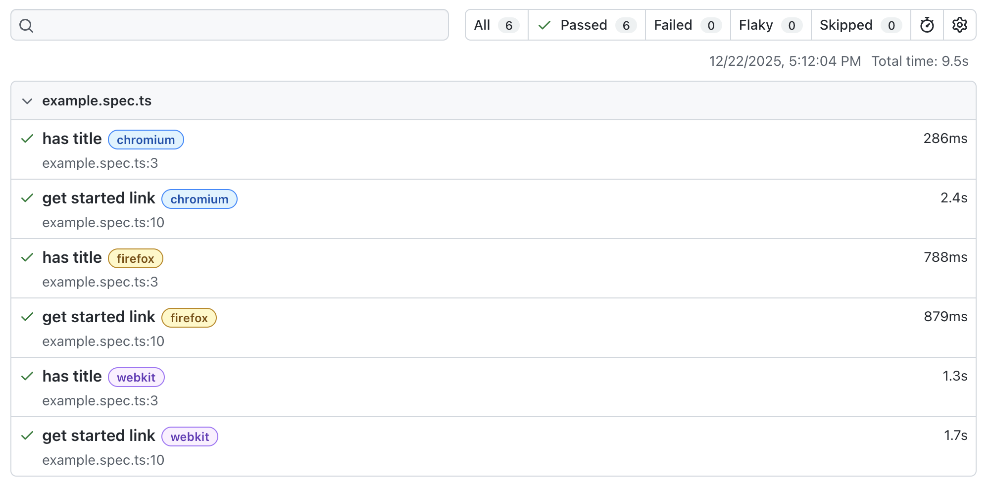 この設定により、1つのテストコードで3つのブラウザでテストを実行できます。さらに、並列実行の設定を行うことで、複数のブラウザでのテストを同時に実行し、テスト時間を短縮することも可能です。