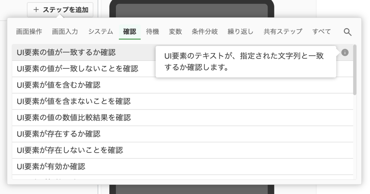 ここではUI要素の値が一致するか確認コマンドを使用していますが、「値を含むか」という部分一致で確認できるコマンドや、正規表現や数値比較のコマンドもあります。豊富な確認コマンドを用いて柔軟なバリデーションができることもMagicPodの魅力の一つです。