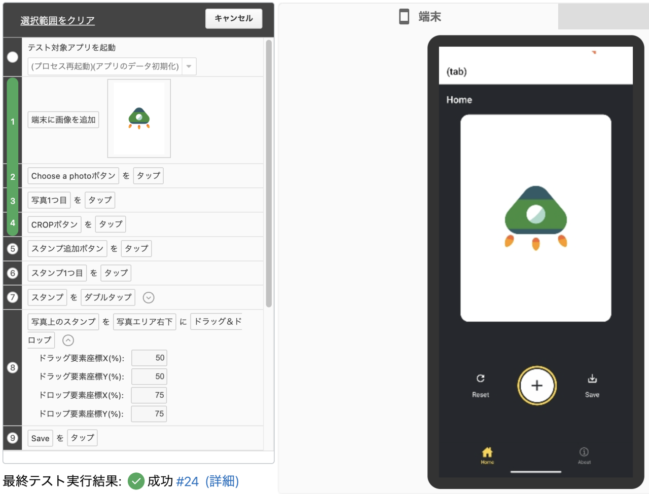 テストケースの対象ステップのみ部分実行したところ、以下画像のようにMagicPodのロゴマークをアプリに追加できました。