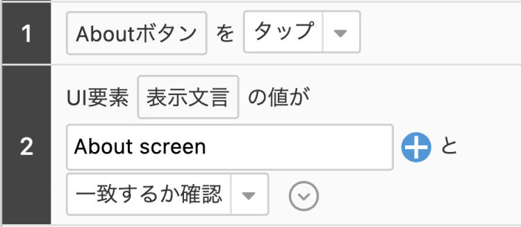 このようなステップで、Aboutページに表示されているべき「About screen」という文字列が表示されていることを確認するテストを作ることができます。