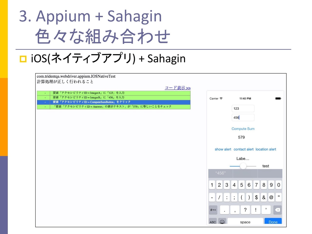 勉強会では、AppiumのテストをJenkinsで実行し、テスト結果をJenkins Sahaginプラグインで確認するデモを行いました。