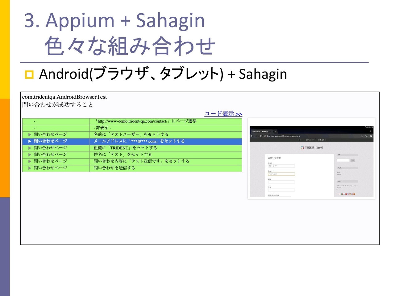 先日公開したオープンソースのSeleniumテスト結果レポートSahaginを使い、モバイルの自動テストツールAppiumのテスト結果を見やすくできるようになりました。