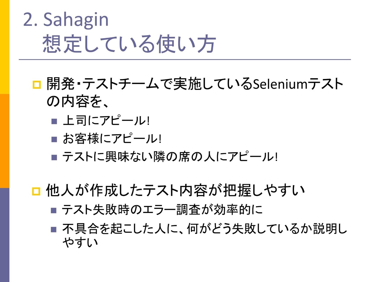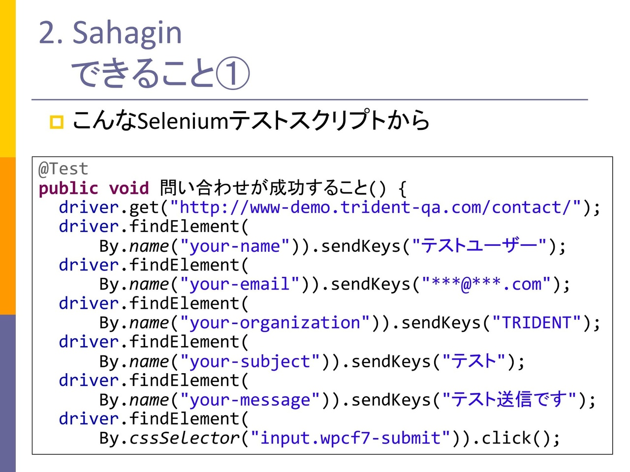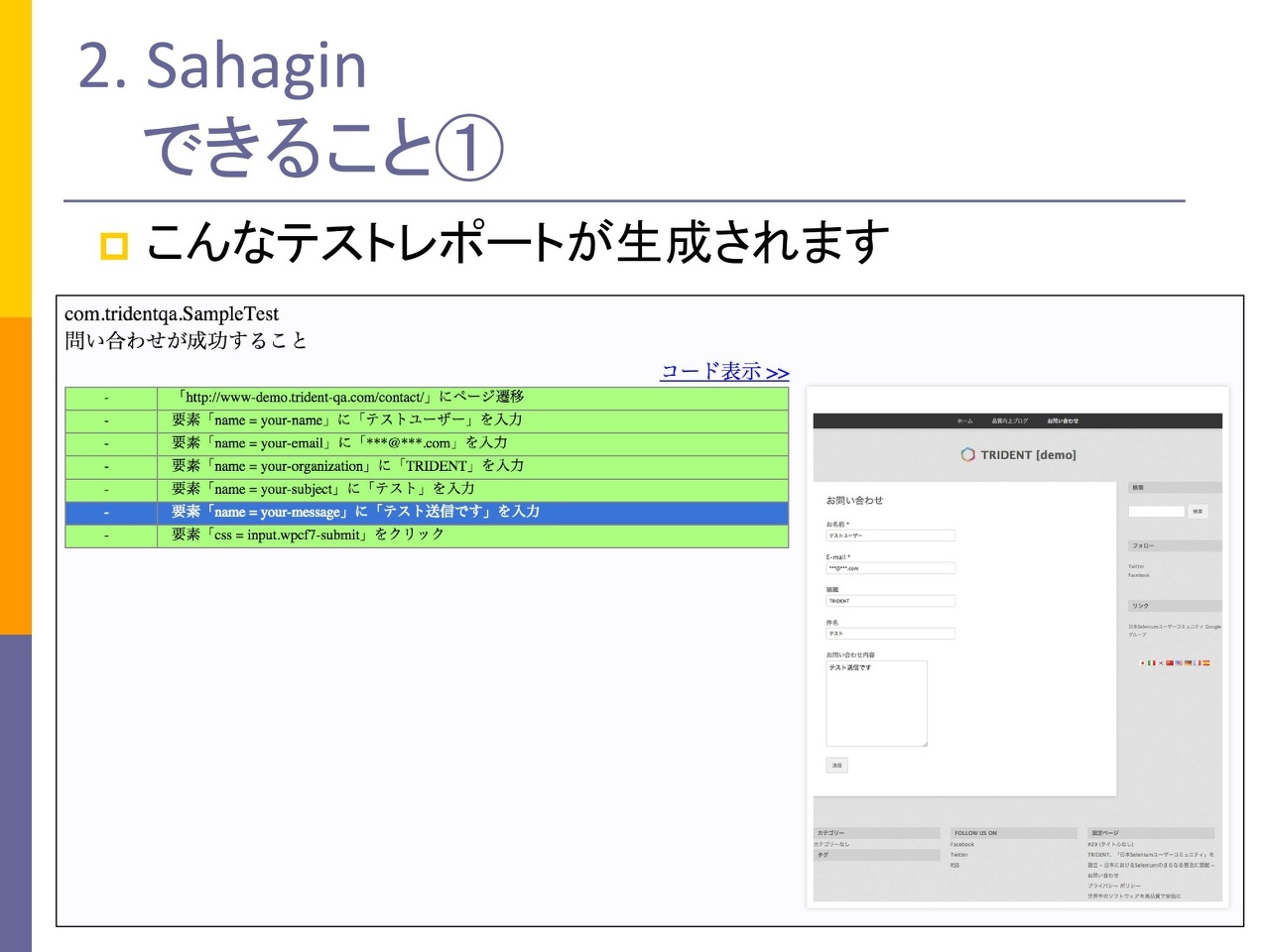 Sahaginは、JavaのSeleniumテストスクリプトから日本語 + 画面キャプチャのテスト結果レポートを生成するツールです。