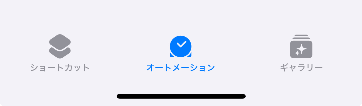 ショートカットアプリを起動し、画面下部の「オートメーション」アイコンをタップします。