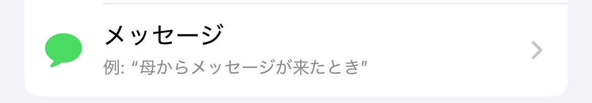 右上の「+」ボタンをタップし、トリガー一覧からメッセージを選択します。これにより、SMSを受信したときに自動処理が実行されるようになります。