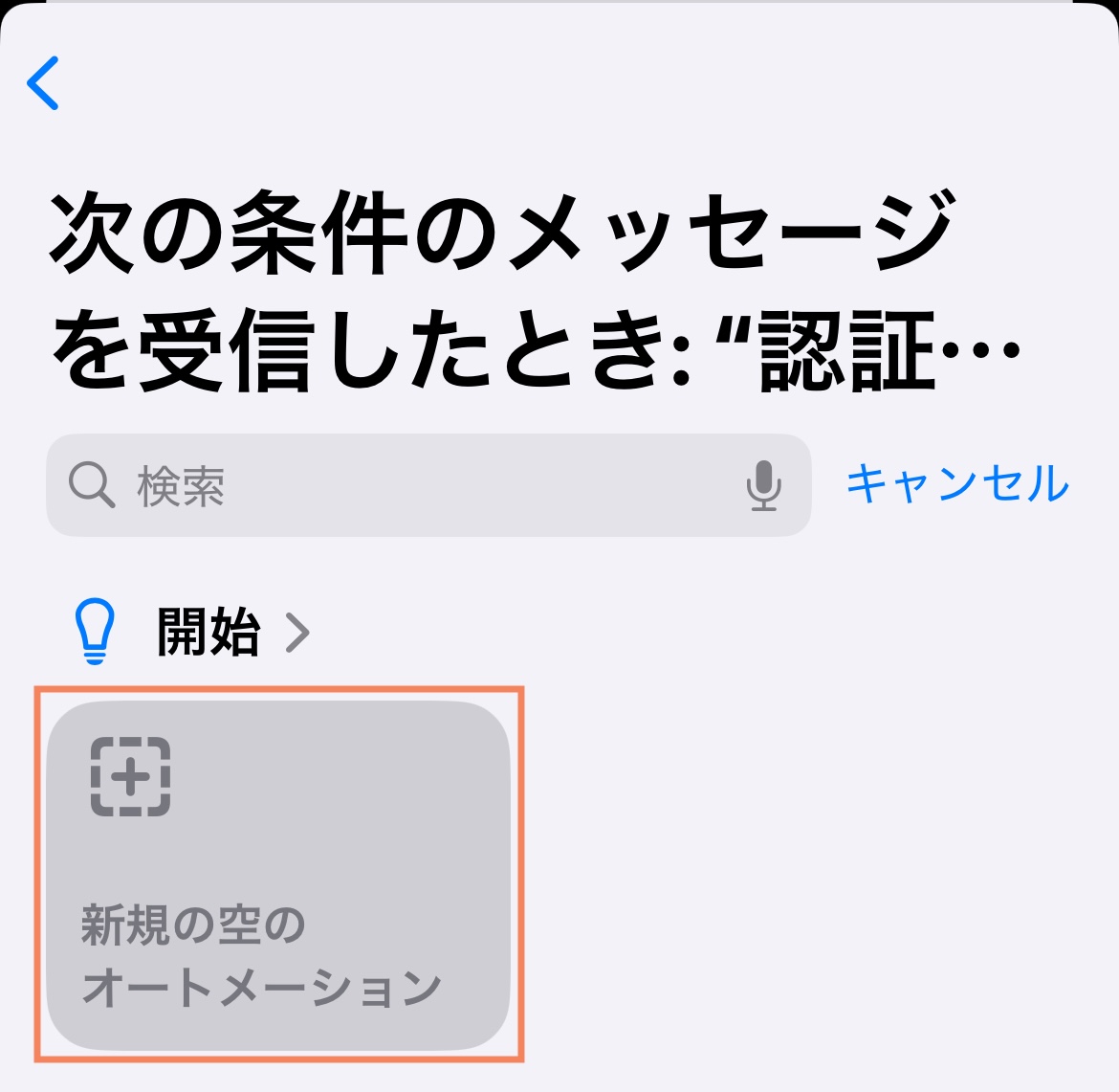 「メッセージが次を含む」を選択し、認証コードのSMSに含まれる特定のキーワードを入力しましょう。