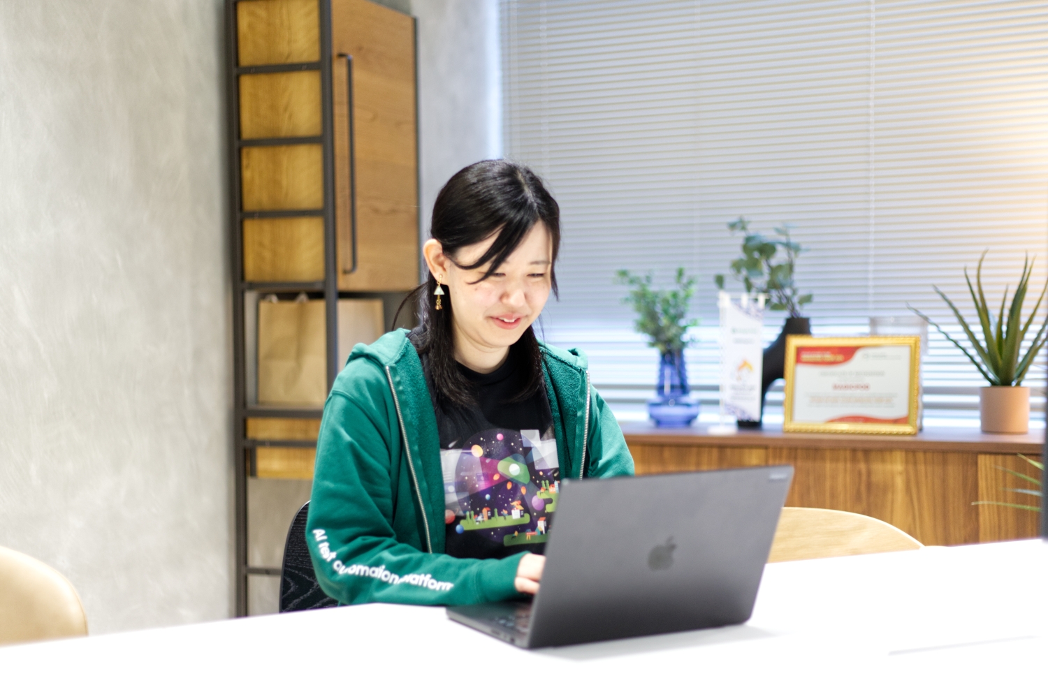 社内公用語が英語である点も特徴です。テキストでのコミュニケーションが中心ですが、朝会などでは英語で業務報告をします。翻訳ツールも活用できますし、日本語だと敬語を過剰に意識したり冗長になってしまったりしがちなので、日本語特有の曖昧さがなく「フラットで分かりやすい」というメリットを感じています。