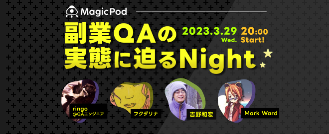 2023/03/29(水)にMagicPod主催の「副業QAの実態に迫るNight」を開催します。