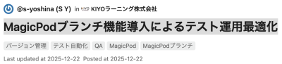 こんにちは、QAエンジニアのヨシナです。 MagicPodにブランチ機能が追加されました! 従来は履歴機能を使ってテストケースを管理していましたが、煩雑さや品質保証の難しさなど、様々な課題がありました。 本記事...