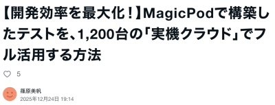 MagicPodをご利用中、あるいはご検討中の皆さま、こんにちは。 筆者は、デバイスクラウドサービス「Remote TestKit」のマーケティング担当です。 私たちは日頃から、「開発現場の負担を少しでも軽減したい!」と...