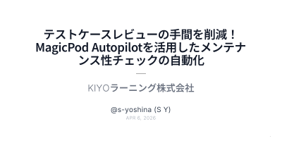 こんにちは、QAエンジニアのヨシナです。 弊社では自動リグレッションテストにMagicPodを使用しています。 テストの品質を維持するため、テストケースの作成・修正時には可読性とメンテナンス性を担保するための...