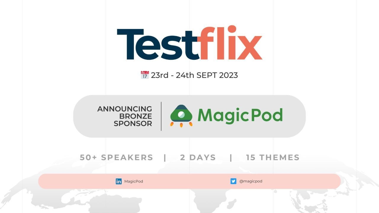 MagicPod is thrilled to announce our Bronze Sponsorship for the highly anticipated TestFlix 2023 Software Testing Conference which is scheduled for the 23rd and 24th of September 2023, hosted by The Test Tribe.