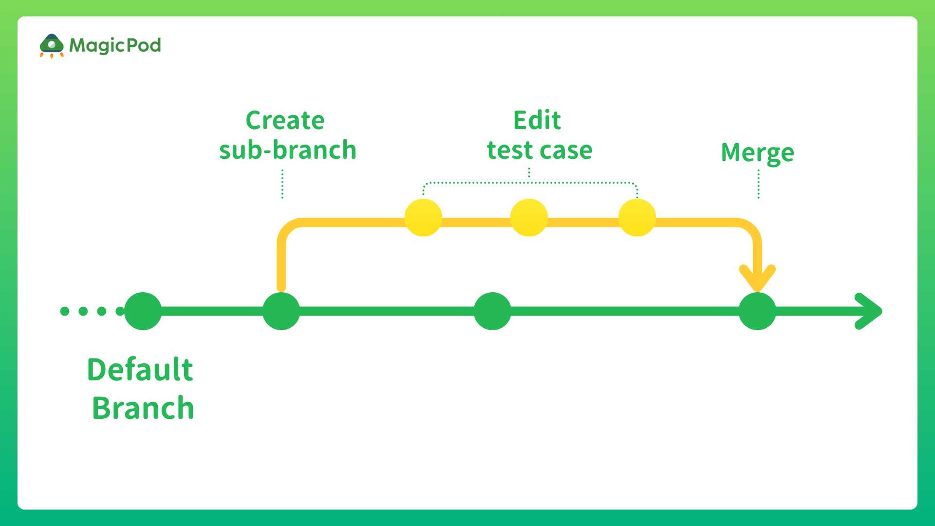 The Branch feature allows you to create multiple branches within a single project. The initial branch is called the "default branch," and you can create new branches based on the content of the default branch. When you edit specific test cases in one branch, those changes are not reflected in other branches, allowing you to temporarily maintain different versions of the same test case using the branch feature.