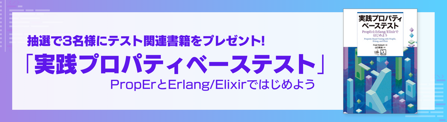 イベントへご参加いただきアンケートにお答えいただいた方の中で合計3名様に、『実践プロパティベーステスト ― PropErとErlang/Elixirではじめよう』**をプレゼントいたします!