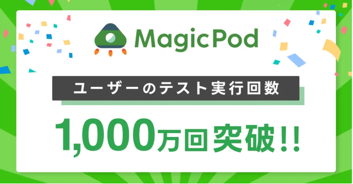 AIテスト自動化プラットフォーム「MagicPod」のユーザーによるテスト実行回数が1,000万回を突破しました。