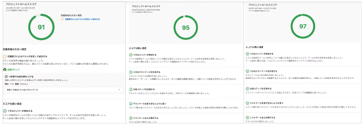 自動テストを健全に保つための2つの取り組み MagicPodにプロジェクトのヘルススコアを表示してくれる機能がリリースされていたのはご存じでしょうか。ヘルススコアの数値は毎週更新され、テストが健全に保たれているかの指標を知ることができます。また、ヘルススコアが低い場合はMagicPodがどうするべきかも提示してくれます。 この機能がリリースされてから私たちのチームではスコアを毎週チェックしていますが、平均90以上と比較的良い数値を継続できていました。