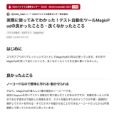 【KDDIアジャイル開発センター株式会社様】実際に使ってみてわかった!テスト自動化ツールMagicPodの良かったことろ・良くなかったところ スマホアプリのリグレッションテストとしてMagicPodを2年ほど使っています。その中でMagicPodを使って良かったことろ、良くなかったところを正直に書いてみました。