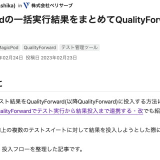MagicPodのテスト結果をQualityForward(以降QualityForward)に投入する方法については、 MagicPodとQualityForwardでテスト実行から結果投入まで連携する・改でも紹介され...